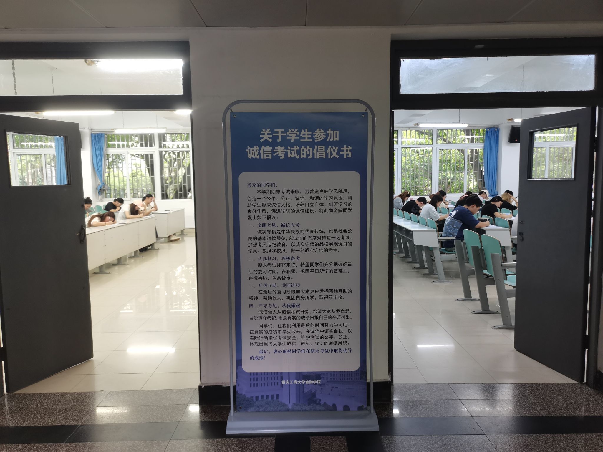 “免监考”诚信考试以教学班为单位,全班同学自愿申请并签订承诺书,承诺“一人作弊,全班重考”。对于申请参加诚信考试的班级,实行班级自荐、学院推荐、学校教务处同意的三级审批制,并接受全校师生的监督等。除考场布置、试卷发放和强调考试须知的程序外,整个考试过程中老师均不出现在考试现场,考试结束后清点学生上交的试卷即可。在考试过程中由巡视员对考场进行巡视,同时接受全校师生的视察与监督。
