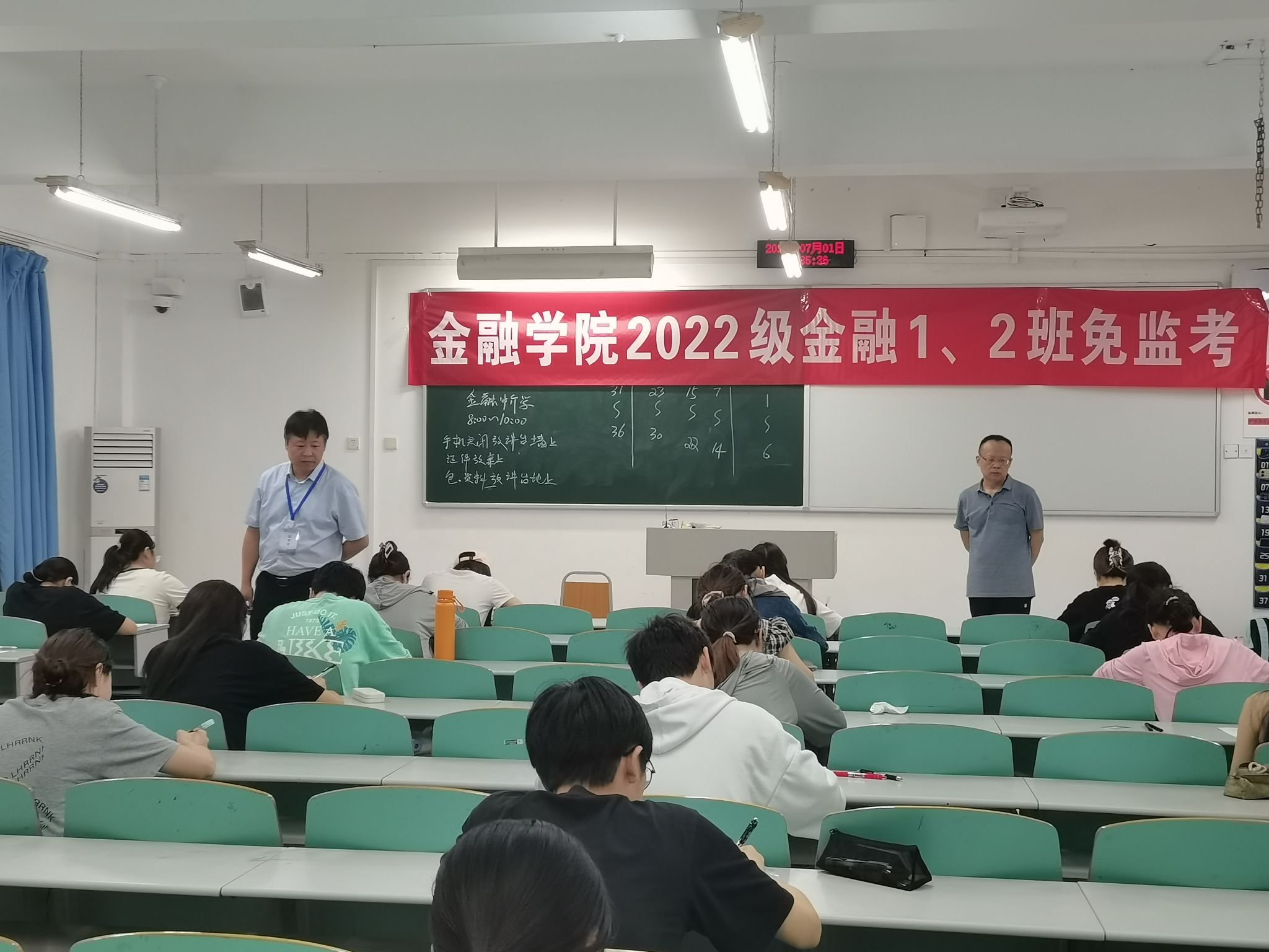 为培养具有“新儒商”精神的新时代大学生,践行“诚信做人,从诚信考试开始”的誓言,2024年7月1日76net必赢线路检测中心2022级金融学专业一二班学生自愿申请的《金融中介学》课程“免监考”诚信考试在07104和07105教室成功举行。教务处杨柏处长、韦晓兰副处长和76net必赢线路检测中心党委书记石世明、副书记余新、副院长魏琪等参加了巡考。