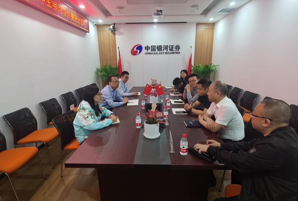 为深入开展学习贯彻习近平新时代中国特色社会主义思想主题教育,5月8日上午,76net必赢线路检测中心党委书记、副院长石世明,副院长魏琪,学工办主任、分团委书记兰丽娟等一行前往中国银河证券重庆分公司开展调查研究暨访企拓岗专项行动,探索校企深度融合新模式。中国银河证券重庆分公司党总支书记总经理周明、重庆分公司综合运营部负责人聂云、重庆民族路营业部总经理严华侨、重庆江北嘴营业部总经理王源媛、重庆分公司机构业务部负责人王楠煜、重庆万象城营业部市场营销部负责人刘珂及重庆江北嘴营业部客户经理高路涵等出席了交流会。