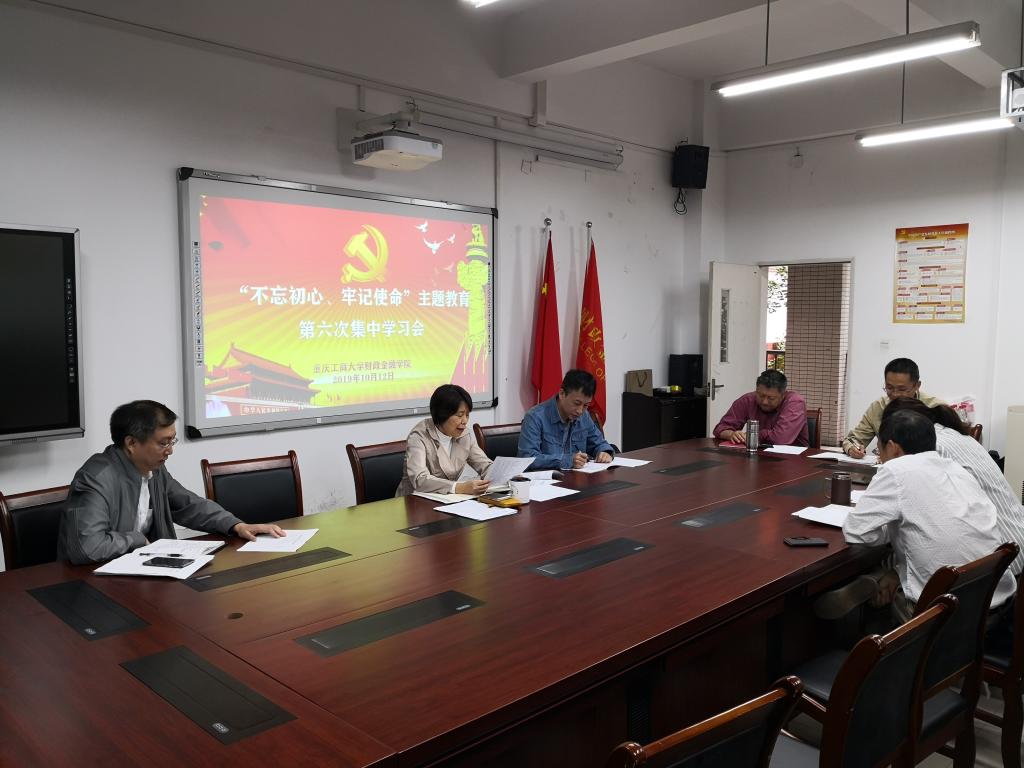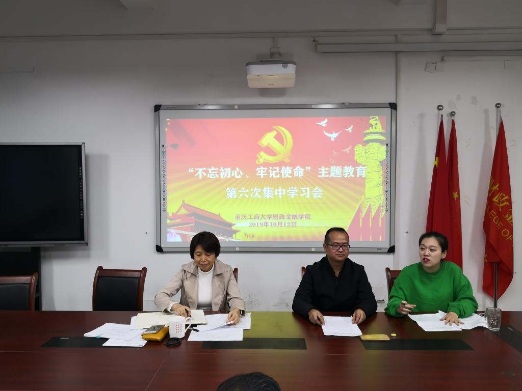 按照学校“不忘初心、牢记使命”主题教育领导小组近期工作安排,结合学院党委“不忘初心、牢记使命”主题教育工作计划,10月12日,财政76net必赢线路检测中心召开了“不忘初心、牢记使命”主题教育第六次集中学习会,学院领导班子全体成员和各支部书记参加了学习。会议由院党委书记杨萍主持。