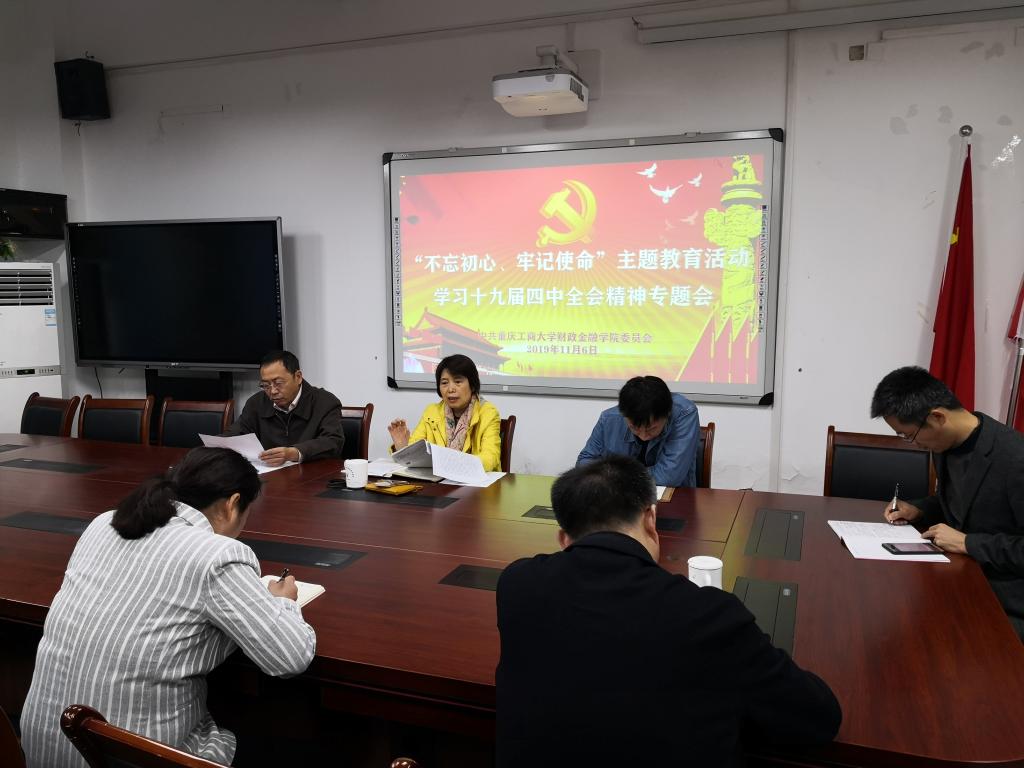 11月6日,财政76net必赢线路检测中心党委召开专题会贯彻学习领会十九届四中全会精神。会议由党委书记杨萍主持,班子全体成员参加了学习。