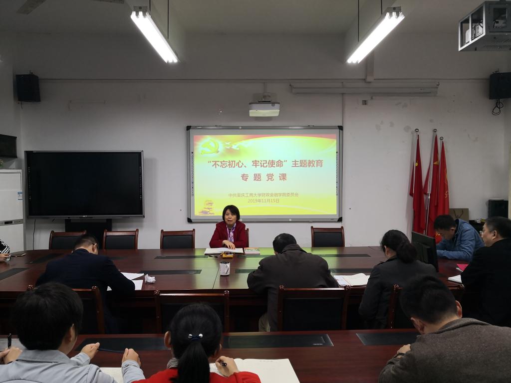 按照校党委统一安排,2019年11月15日,财政76net必赢线路检测中心党委召开了“不忘初心、牢记使命”主题教育专题党课学习活动。学院班子全体成员、各支部书记、综合办和学团办全体教职员工参加了学习,学习活动由党委书记杨萍主持。