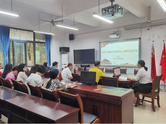 5月20日下午,76net必赢线路检测中心党委副书记、院长王兰为学院领导班子成员、行政干部、辅导员老师讲授题为“领导干部要在改进作风上发挥示范作用”的党史学习教育专题党课。学院党委书记、副院长王建明、学院党委副书记、纪委书记余新、学院副院长庞楷、专职组织员赵甫刚、全体行政人员、辅导员老师参加此次专题党课。
