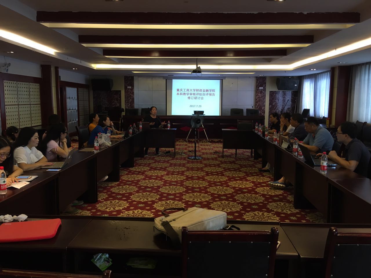 7月29日上午,王兰副院长主持召开我院本科教学审核评估学院自评报告与专业自评报告修订研讨会。首先,王院长从生师比、科研情况、学生实习实践、2017年培养方案新变化四个方面介绍了我院的总体情况,并提出需要重点关注的问题;其次,各位攥写自评报告的教师认真学习了学校关于迎接本科教学审核评估的相关文件与规定,同时就报告撰写过程中存在的难点与问题进行交流;最后,各系主任结合本系的实际情况,对我院本科教学审核评估自评报告的修订进行了任务分解与具体分工。