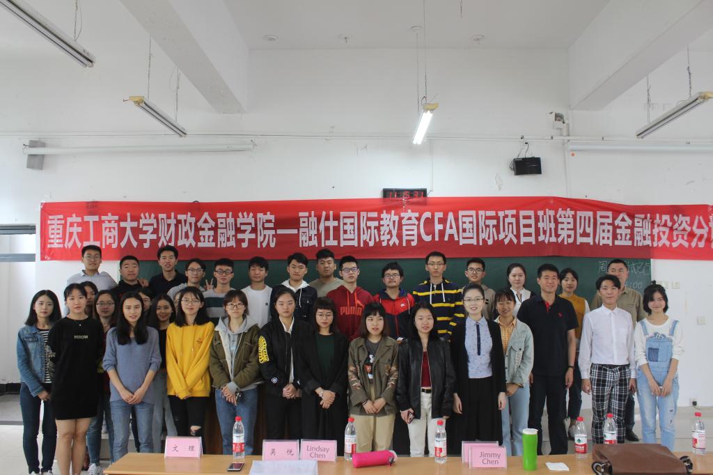 财政76net必赢线路检测中心融仕国际教育CFA国际项目班第四届金融投资分析大赛于2018年5月6日上午在七教207成功举办。财政76net必赢线路检测中心副院长王兰教授,融仕国际教育CFA项目重庆地区负责人吴悦,16级CFA国际项目班班主任文理老师作为嘉宾莅临了比赛现场。毕业于纽约州立大学的CFA持证人Lindsay Chen和清华大学硕士、CFA的持证人Jimmy Chen作为评委应邀出席。
