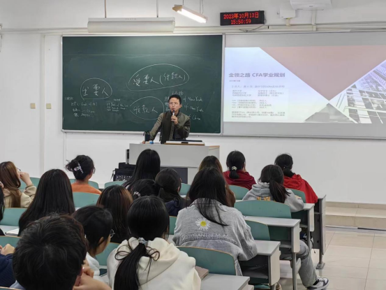 为使我院新生快速地适应大学学习生活,充分了解自己所学专业,明确大学目标,有效的开展专业学习,2023年10月13日下午,金融学院在博智楼7105教室顺利举行2023级CFA班新生学业规划讲座。CFA持证人Allen老师作为本次讲座的主讲人,对新生的四年规划做了详细的说明。