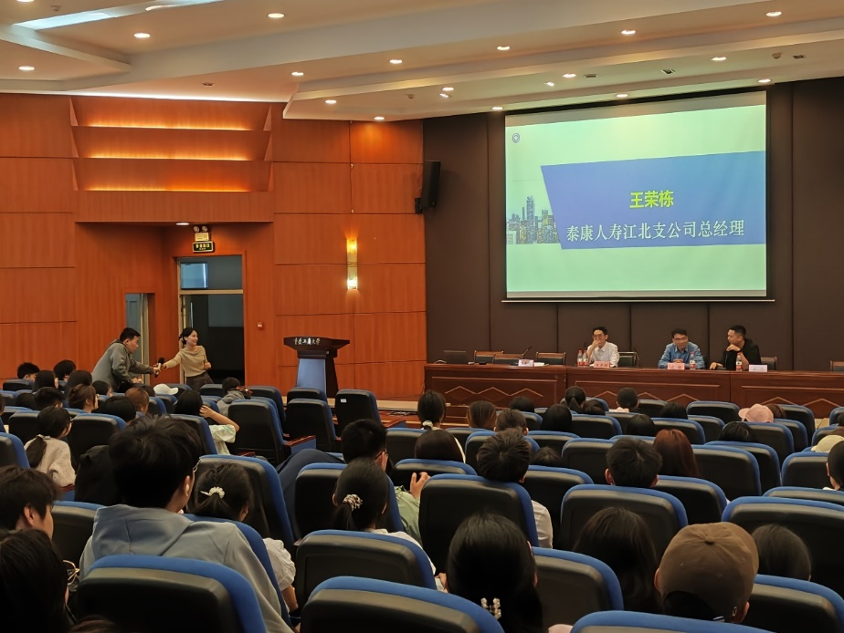 为深入贯彻落实《必赢76net线路2024 年本科教育教学节工作方案》,全面推进教育教学创新,提升人才培养质量,2024年3月30日上午,由保险系承办的76net必赢线路检测中心本科教育教学节活动在必赢76net线路江北校区宏智楼报告厅和506教室举行。此次活动主题是“金融保险行业校友、英才进课堂—--职业分享与就业发展前景分析”。泰康人寿江北支公司总经理王荣栋、平安银行重庆分行综合金融拓展部总经理王涛、中国人民财产保险渝中支公司重要客户部经理倪藤鹭、华泰证券重庆营业部团队长兼产品负责人郭士慷,经济管理实验教学中心主任庞楷教授、保险系部分老师以及通识学院23级金融学类学生参加了讲座。两个会场分别由保险系主任石晨曦和余涛老师主持。