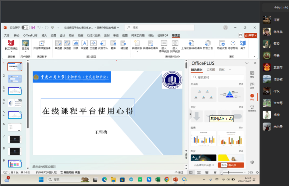会上,王雪梅老师就数字化教学融入课堂与大家分享了经验和体会。院长王兰就近期学院教学督查、试卷出题、课堂教学、教研活动等进行了安排指导。