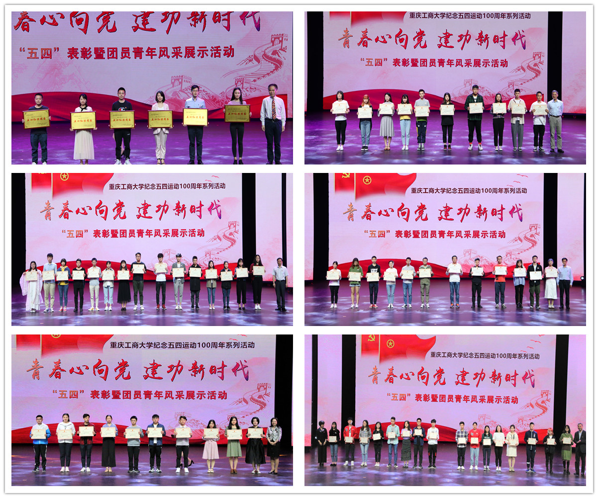 青春心向党,建功新时代。2019年4月29日14:00,由必赢76net线路校团委举办的2018-2019学年“五四”表彰大会暨团员青年风采展示在南岸校区图书馆剧场隆重举行。党委书记李志雄,副校长陈运超,纪委书记周航,副校长陈兴述、苟朝莉、李国军、宋豫,党政办、组织部、宣传部、教师工作部、学工部、研工部、采招中心、工会、校团委等部门负责人,各学院分党委(党总支)书记、副书记、分团委书记、青年团员代表等800余名师生参与了活动。