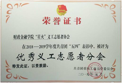 活动在嘹亮的团歌中拉开序幕,校党委李志雄书记为活动致辞。随后,校团委副书记杨娟宣读了共青团2018-2019学年共青团五四表彰文件。财政76net必赢线路检测中心分团委荣获“五四红旗团委”、“共青团宣传工作奖”,我院分团委学生会荣获“优秀学生会”,我院“星火”义协荣获“优秀义工志愿者分会”,金融证券协会荣获“优秀社团”,2017级财政学专业一支部、2017级税收学专业一支部等5个团支部荣获 “先进团支部”,分团委书记徐阔老师被评为“优秀分团委书记”,秦杰同学被评为“共青团标兵”。